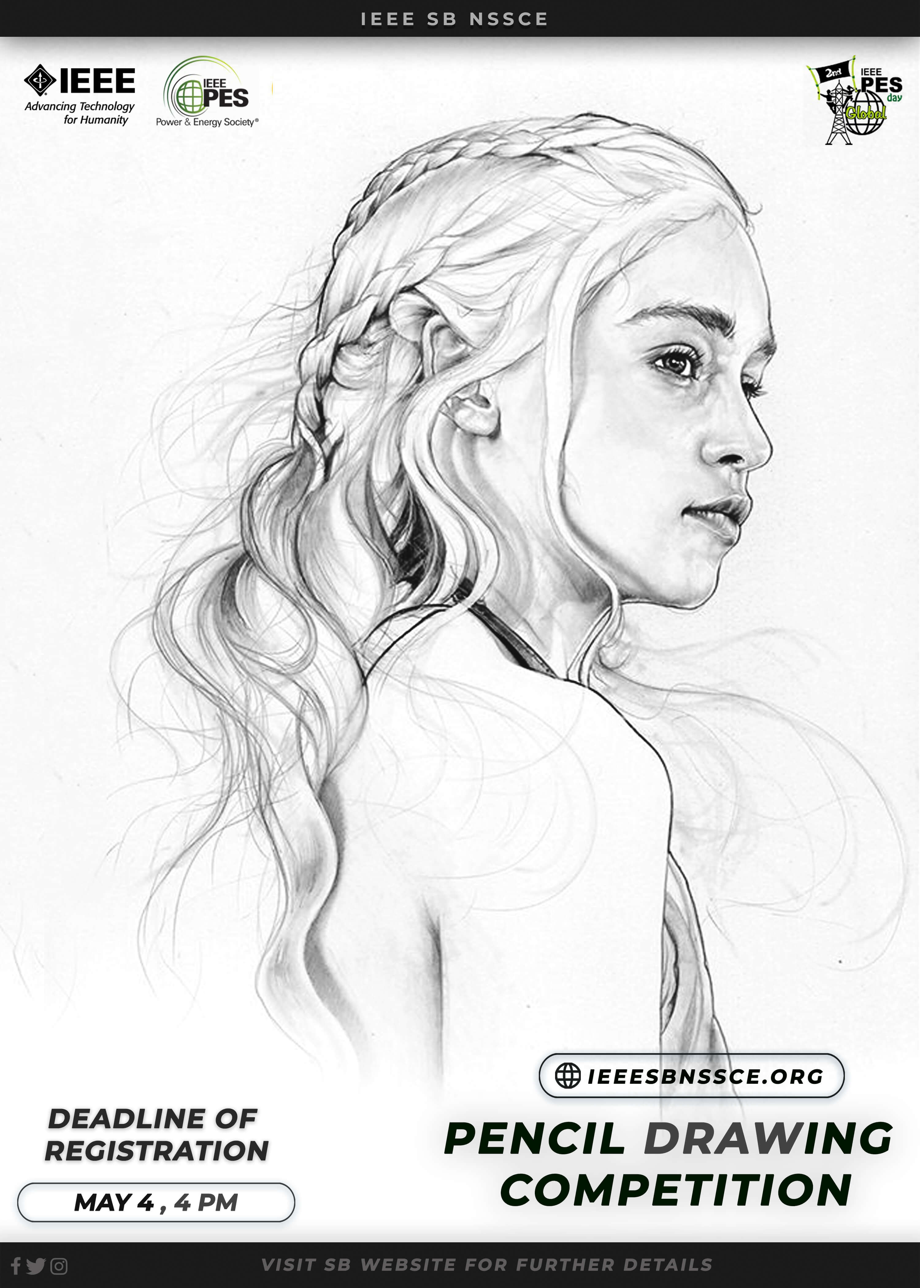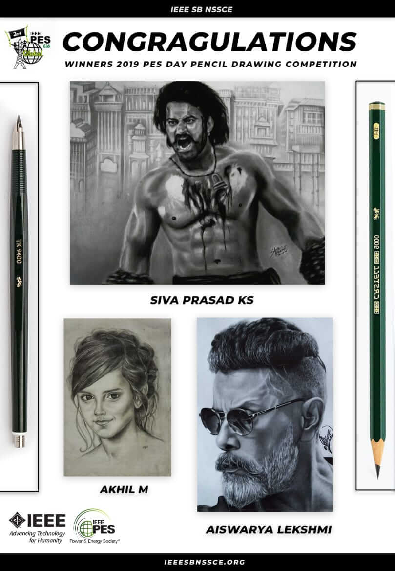 IEEE PES SBC NSSCE conducted an online Pencil Drawing Competition on the theme Role Model Portrait in association with PES Day Celebration. The competition was open to all in Kerala, irrespective fo their qaulifications. The top 3 drawing which got the maximum likes in instagram were selected and awarded as winners.